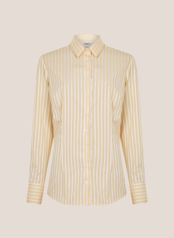 Confeccionada em tecido plano, a camisa possui modelagem slim, padronagem xadrez, gola de camisa, colarinho slim, detalhe de logo bordado na parte frontal, mangas longas, punhos clássicos e fechamento frontal por botões.