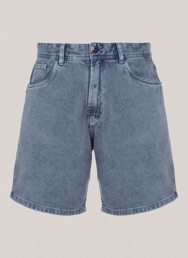 Bermuda Box: Modelagem com a a cintura intermediária, gancho desencaixado, shape solto ao corpo e comprimento acima do joelho.