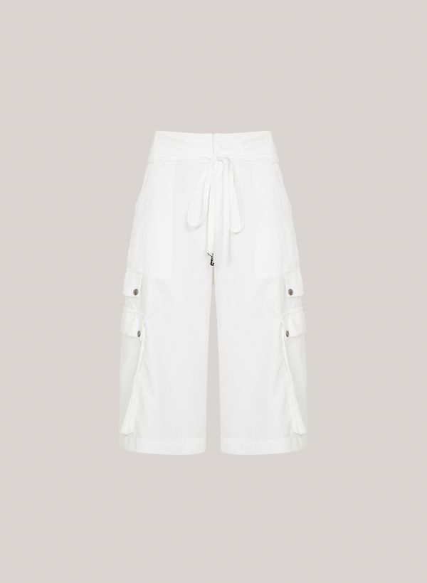 cargo, cós com passantes e cordão, bolsos frontais, bolsos laterais com
