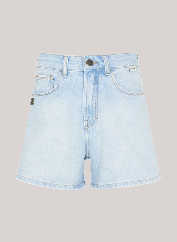 Confeccionada em jeans, a Bermuda possui modelagem girlfriend, cós com passantes, cinco bolsos, fechamento frontal por zíper e botão e acabamento pespontado.