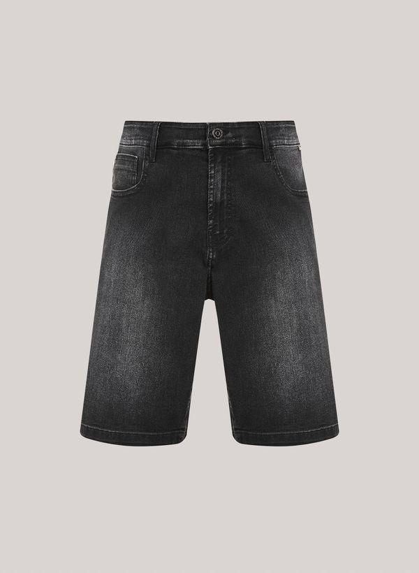 Confeccionada em jeans, a Bermuda possui modelagem regular fit, cós com passantes, cinco bolsos, fechamento frontal por zíper e botão, etiqueta externa aplicada e acabamento pespontado.