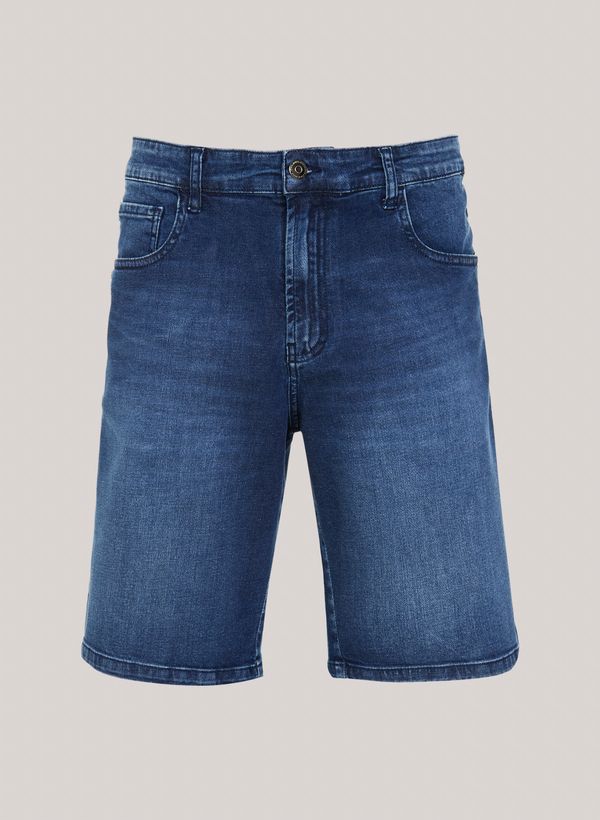 Confeccionada em jeans, a Bermuda possui modelagem regular fit, cós com pssantes, bolsos frontais e posteriores, fechamento frontal por zíper e botão, etiqueta externa aplicada e acabamento pespontado.