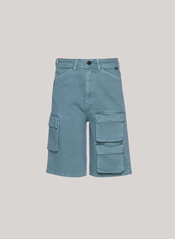 Confeccionada em sarja, a Bermuda possui modelagem jorts, cós com passantes, bolsos frontais tipo cargo, bolsos posteriores, fechamento frontal por zíper e botão, etiqueta externa aplicada e acabamento pespontado.