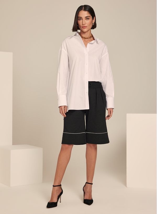 Investir em peças com toque contemporâneo e versátil, garantem looks únicos para compor diversas produções. Combine a Bermuda Beta com mix de acessórios, regata e complemente com scarpin preto, para arrematar.