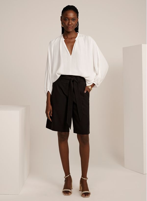 Coringa em dias quentes, a Bermuda Raven deixa seu visual sofisticado e confortável, além de ser perfeita para passeios e encontros despretensiosos. Combine com uma blusa fluida off white, acessórios e sandália de salto, para uma produção atemporal com toque trendychic.