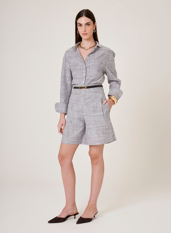 Confeccionada em tecido plano, a bermuda possui modelagem Special Fit, padronagem Listrada, cós alto, bolsos, fechamento por zíper e colchete interno e acabamento refinado.