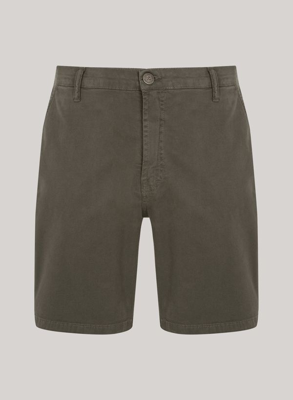 Confeccionada em sarja, a Bermuda possui modelagem ajustada na cintura com quadril e coxa levemente ajustados, gancho encaixado, cinco bolsos, cós com passantes, fechamento frontal por zíper e botão e acabamento pespontado.