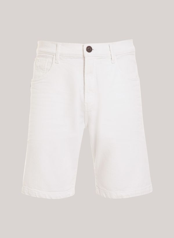 Confeccionada em sarja, a Bermuda possui modelagem ajustada abaixo da cintura com quadril e coxa levemente soltos, cinco bolsos, cós com passantes, fechamento frontal por zíper e botão e acabamento pespontado.