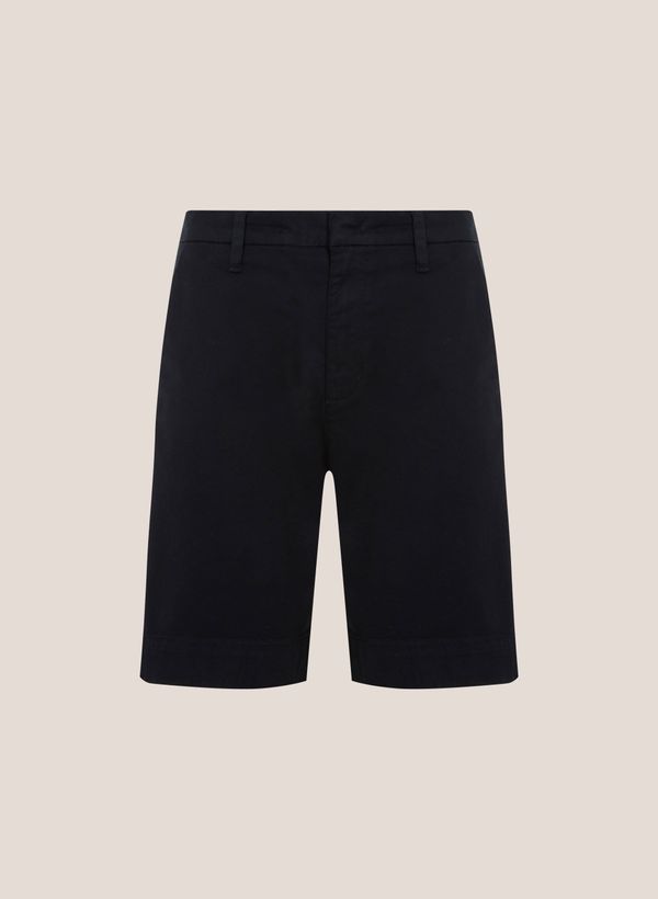 Confeccionado em sarja, a Bermuda possui modelagem Jorts, corte de bermuda e comprimento na altura do joelho, cintura média, cós com passantes, bolsos frontais e posteriores, barra larga pespontada e fechamento por zíper e colchete.