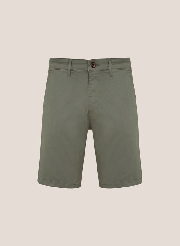 Confeccionada em (material), a Bermuda possui modelagem Slim Fit, cós com passante para cintos, bolsos frontais e posteriores, fechamento por zíper e botão e acabamento pespontado.