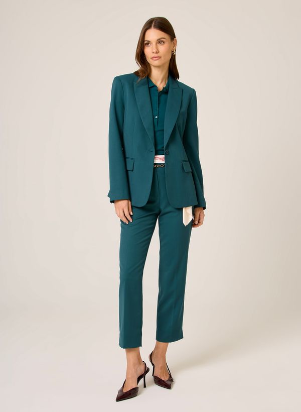 Slim, decote em "V", lapelas frontais, bolsos frontais com lapela, fechamento frontal por botão, mangas longas e acabamento pespontado.