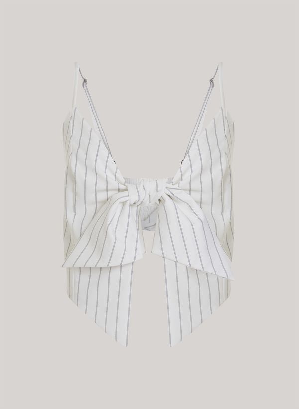 Confeccionada em tecido plano, a Blusa possui modelagem cropped, alças finas com regulagem, decote em "V", laço no busto, elástico nas costas e acabamento interno.