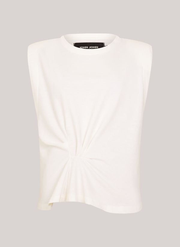 Confeccionada em malha, a Blusa possui modelagem justa, gola careca, ombros largos, detalhe frizado frontal e acabamento pespontado.
