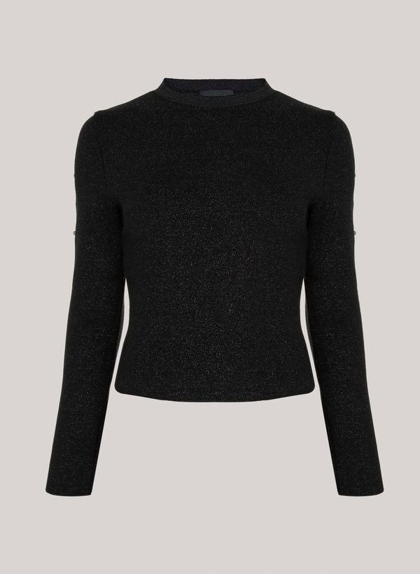 Confeccionada em tricot, a Blusa possui modelagem justa, gola arredondada, mangas longas, detalhes vazados nas laterais e nas mangas e acabamento canelado.