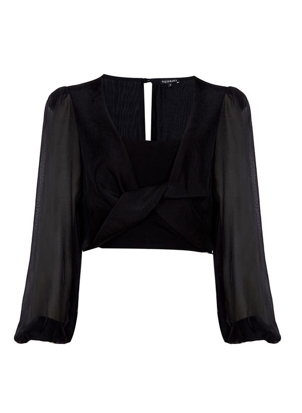 Confeccionada em tecido plano, a Blusa possui detalhe torcido frontal, gola em V, mangas bufantes longas, detalhe vazado posterior com fechamento por botão e acabamento pespontado.