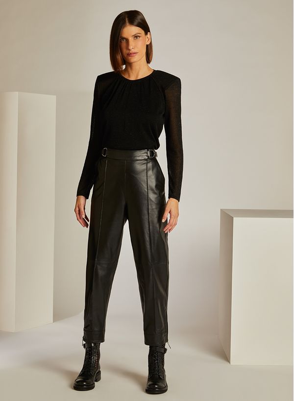 Elegante e versátil, a Blusa Gabi tem um toque de tricot que eleva qualquer look de inverno. Use com uma calça de couro preta e finalize com coturnos, para um visual all black infalível e poderoso.