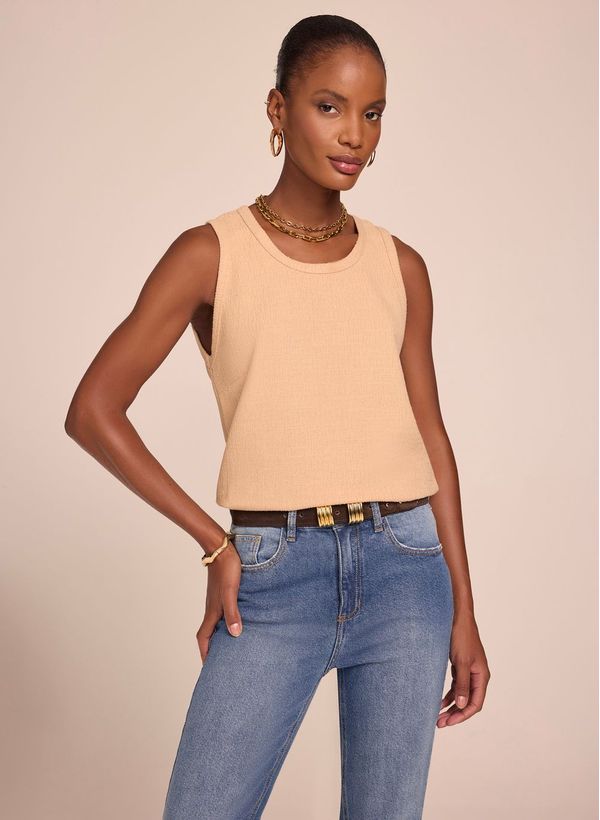 Confeccionada em malha, a Regata possui modelagem e caimento mais reto ao corpo, alças médias, decote em arredondado e acabamento pespontado.