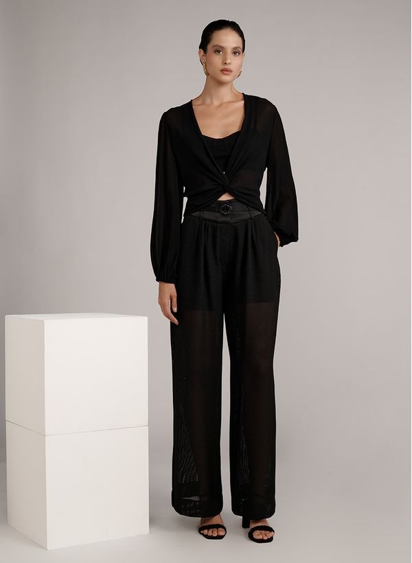As peças em viscose possuem um toque leve e fresco, que valoriza a produção sem muito esforço. Invista no look all black combinando com sandálias de salto e acessórios para um visual elegante.