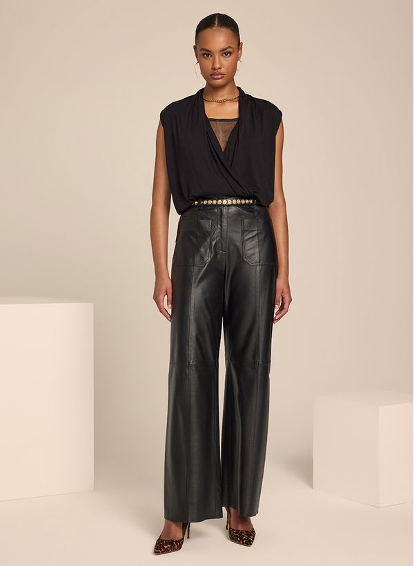 Equilíbrio perfeito entre estilo, elegância e conforto, A Blusa Paulinha traz uma modelagem leve para diversos momentos. Combine com mix de acessórios dourados, calça de couro e finalize com scarpin estampado, para um look all black chic.