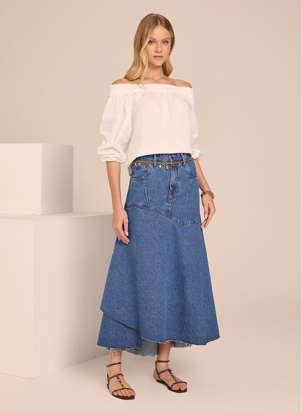 Valorizando ainda mais o visual, a Blusa Selena garante composições poderosas e infalíveis. Combine com mix de acessórios dourados, saia jeans e finalize com sandália rasteira, para um look sofisticado.
