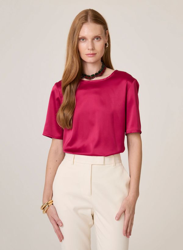 Confeccionada em malha, a Blusa possui modelagem Special Fit, decote redondo, mangas curtas, logo em metal localizado costas, detalhe costas próximo ao ombro e acabamento pespontado.