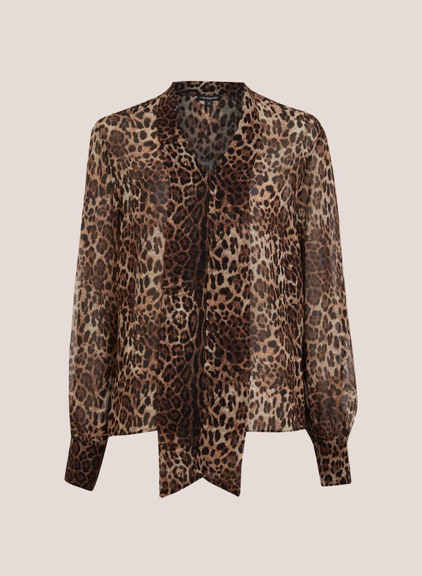 Confeccionada em seda, a Blusa possui modelagem Regular Fit, mangas longas, punho com abotoamento, decote "V", detalhe frontal laço, estampada, logo em metal nas costas.