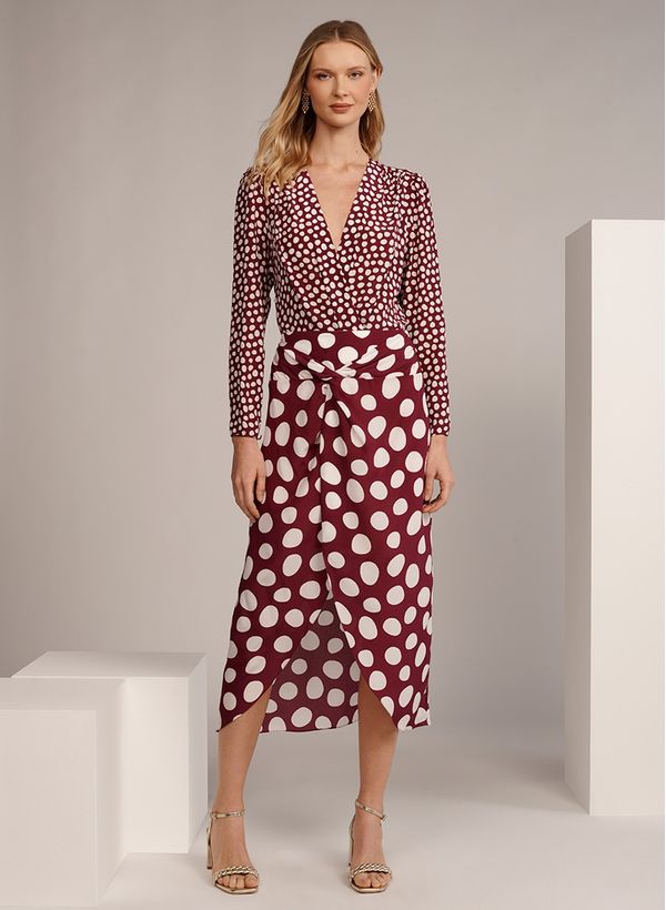 O Body é confeccionado em seda com estampa, possui decote V transpassado,mangas longas e acabamento pespontado.