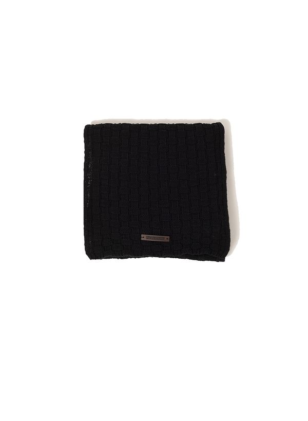 Confeccionado em tricot, o cachecol possui toque suave, acabamento canelado e tag da marca aplicada.
