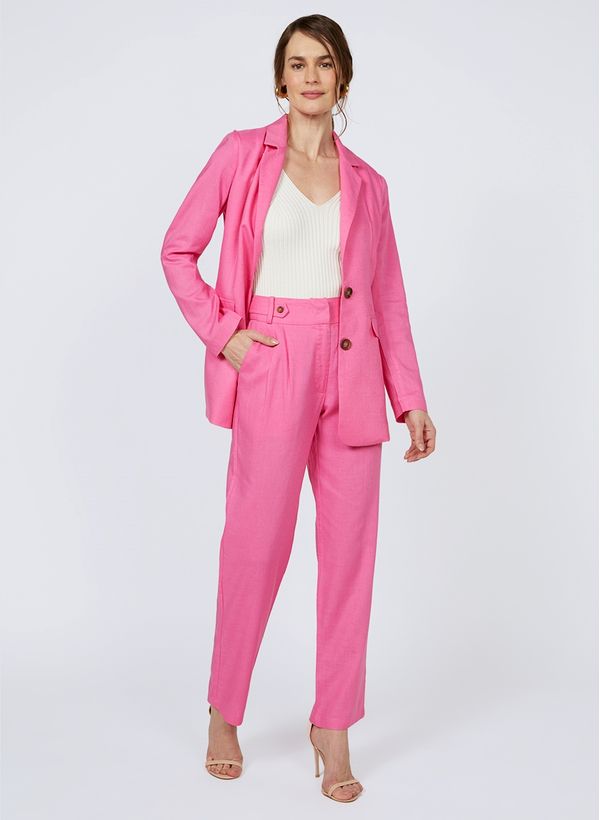 Com a Calça Alfaiataria Linho; você tem conforto e sofisticação em uma mesma peça. Combine este item com blazers e regatas de tecidos leves; como seda ou cetim. Arremate o visual com uma sandália de salto alto ou scarpin.