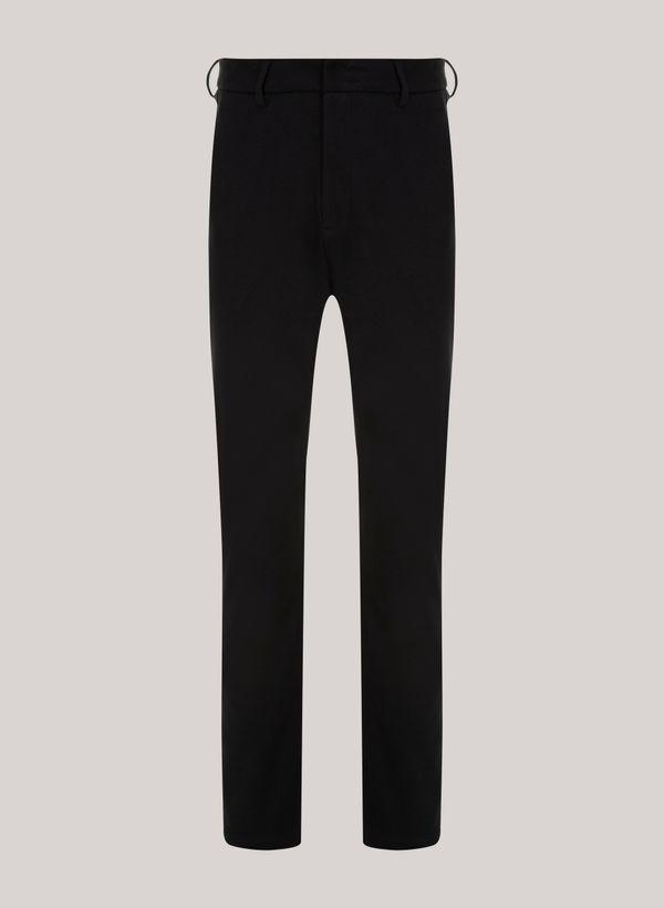 Confeccionada em tecido plano, a Calça possui modelagem reta, cós com passantes, bolsos frontais e posteriores, fechamento frontal por botão e zíper interno e acabamento pespontado.