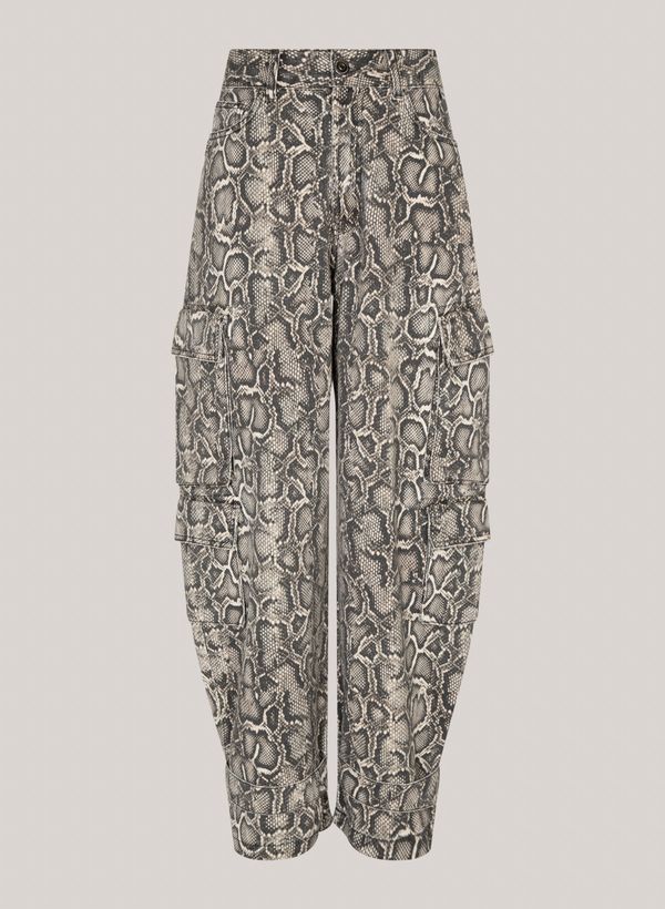 Confeccionada em sarja, a Calça possui modelagem balloon, cós com passantes, bolsos frontais e posteriores, bolsos laterais tipo cargo, fechamento frontal por zíper e botão e acabamento pespontado.