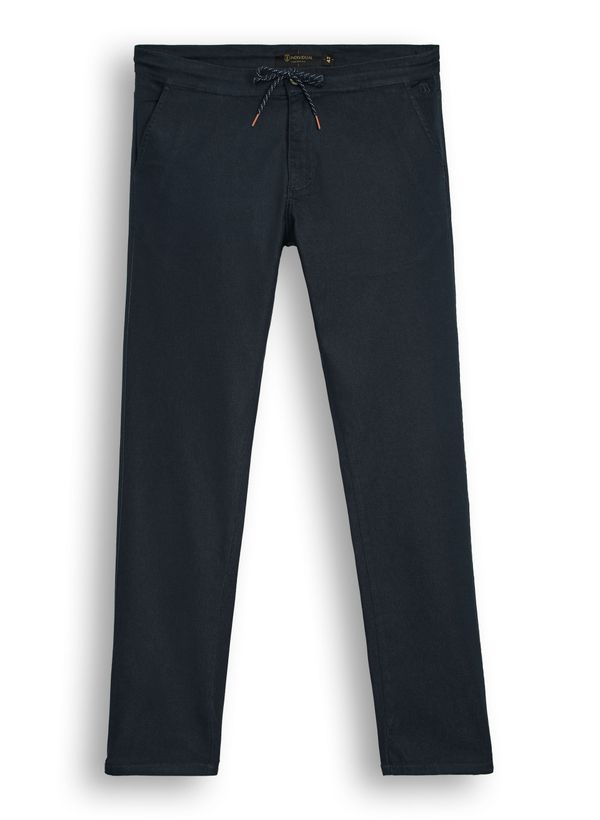 Confeccionada em sarja, possui modelagem concept, cós aplicado, cordão para amarração, bolsos frontais modelo faca, bolso posterior e acabamento pespontado.