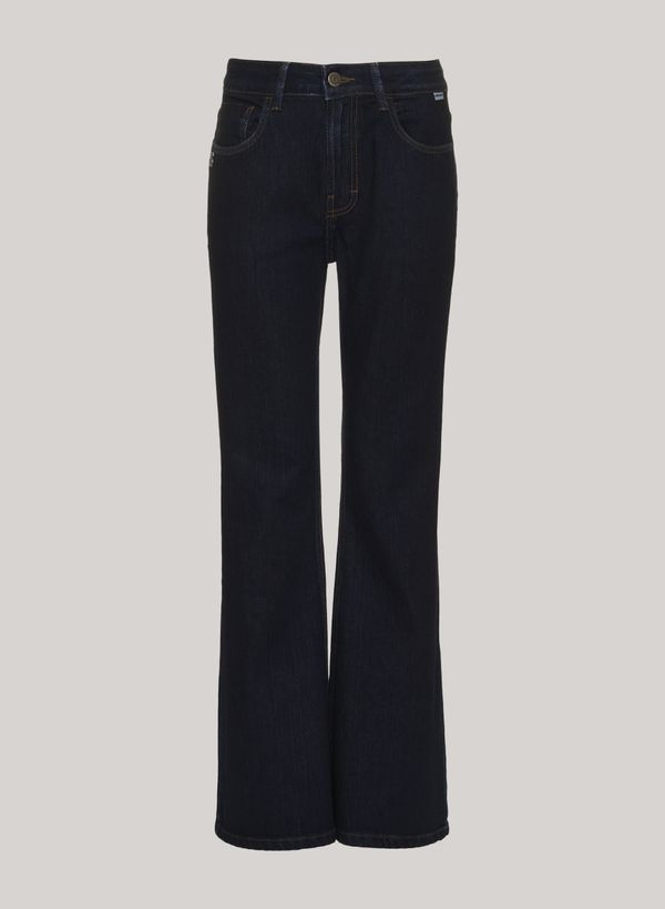 Confeccionada em jeans, a Calça possui modelagem comfort fit, cós com passantes, bolsos frontais e posteriores, fechamentofrontal por zíper e botão e acabamento pespontado.