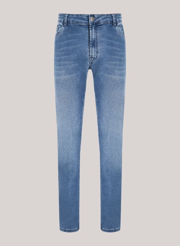 comfort slim, cós com passantes, bolsos frontais e posteriores, fechamento frontal por zíper e botão, etiqueta externa aplicada e acabamento pespontado.