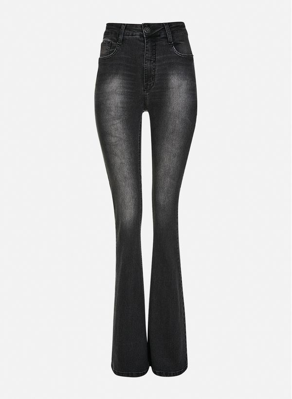 Confeccionada em jeans, a Calça possui modelagem flare, cós com passantes, bolsos frontais e posteriores, fechamento frontal por zíper e botão e acabamento pespontado.