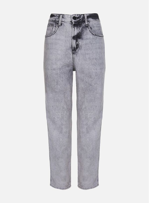 Confeccionada em jeans, a Calça possui modelagem mom jeans, cós com passante, bolsos frontais, bolsos posteriores, fechamento frontal por zíper e botão, plaquinha metalizada com a logo da marca e acabamento pespontado.