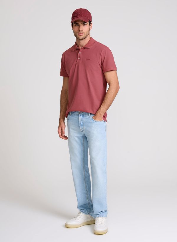 Confeccionada em jeans, a Calça possui modelagem regular fit, cós com passantes, cinco bolsos, fechamento frontal por zíper e botão, etiqueta externa aplicada e acabamento pespontado.