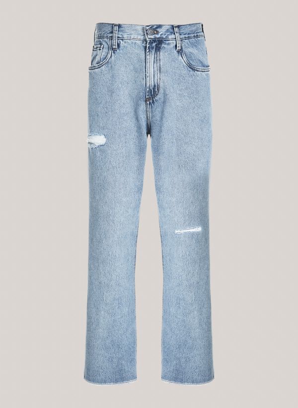 Confeccionada em jeans com lavagem Clara, a Calça possui modelagem Relaxed Fit, mais despojada ao corpo, cós com passantes, bolsos, detalhes de puídos, fechamento frontal por zíper e botão e acabamento pespontado.