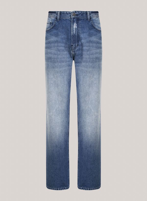 relaxed fit, cós com passantes, cinco bolsos, fechamento frontal por zíper e botão,