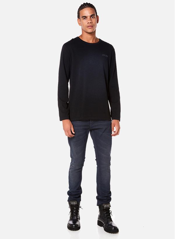 Confeccionada em jeans, a Calça Jeans possui modelagem Skinny, bolsos frontais e posteriores, cós com passantes, detalhes de ferragens foscas, fechamento frontal por zíper e botão e acabamento pespontado.
