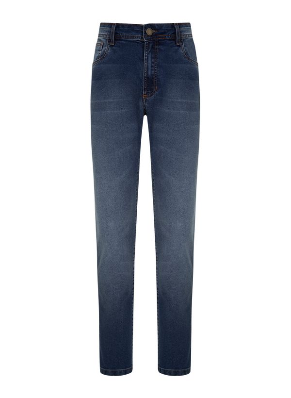 Confeccionada em jeans e algodão reciclado, a Calça possui modelagem skinny, cós com passantes, bolsos frontais e posteriores, fechamento frontal por zíper e botão, etiqueta externa aplicada e acabamento pespontado.