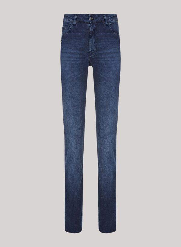 skinny, cós com passantes, bolsos frontais e posteriores, fechamento frontal por zíper e botão, etiqueta externa aplicada e acabamento pespontado.