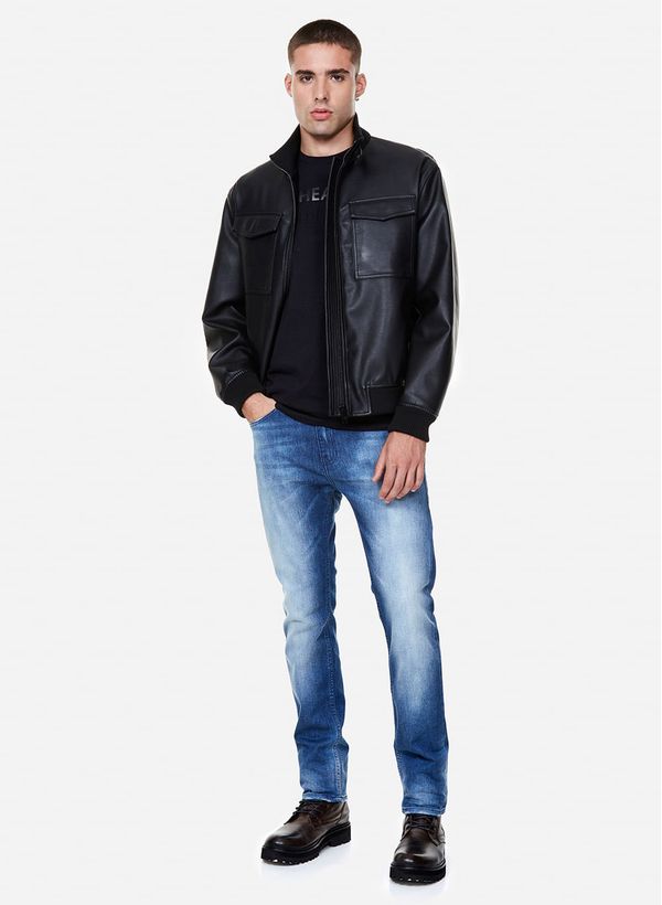 Calça Jeans confeccionada em jeans com estonagem clara, na modelagem Slim Fit, a Calça Jeans possui cós com passantes aplicados, bolsos, fechamento frontal por zíper e botão e acabamento pespontado.