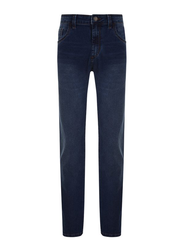 Confeccionada em jeans e algodão reciclado, a Calça possui modelagem slim fit, cós com passantes, bolsos frontais e posteriores, fechamento frontal por zíper e botão, etiqueta externa aplicada e acabamento pespontado.
