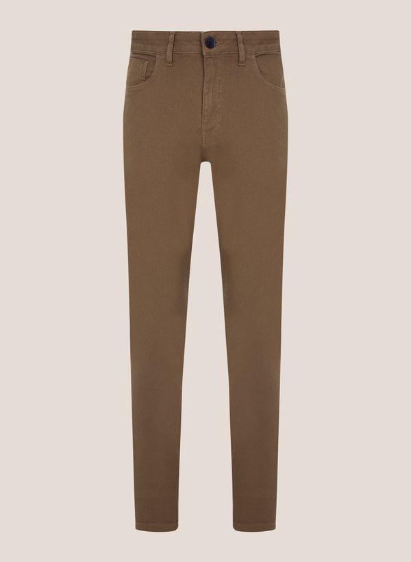 Confeccionada em jeans, a Calça possui modelagem ajustada ao longo das pernas e caimento rente ao corpo sem comprometer o conforto, cós com passante para cintos, etiqueta externa, fechamento por zíper e botão e acabamento pespontado.