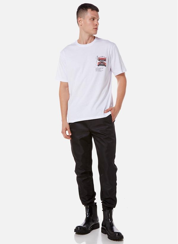 Confeccionada em tecido plano, a Calça possui modelagem jogging, cós com cordão para amarração, bolsos frontais e posterior e acabamento pespontado.