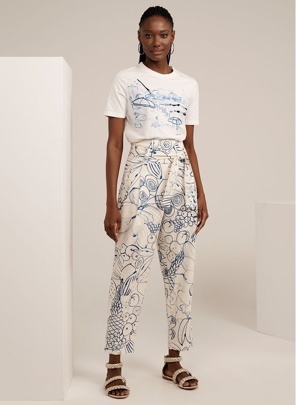 Desenvolvido em parceria com o ilustrador carioca, para refrescar os looks da temporada aposte em estampas e no linho para compor a produção com conforto e elegância. Combine com acessórios, blusa e finalize com sandália rasteira, para um visual feminino e easy chic.