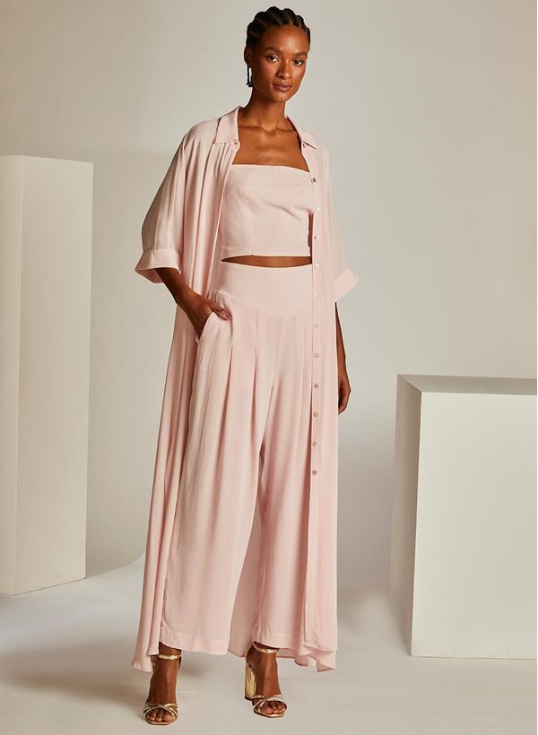 As peças de fluidas garantem um look elegante, com um toque fresh. Invista na Calça Gica usando o twin set da mesma coleção, com acessórios e sandálias de salto ou flats, para um visual contemporâneo e charmoso.