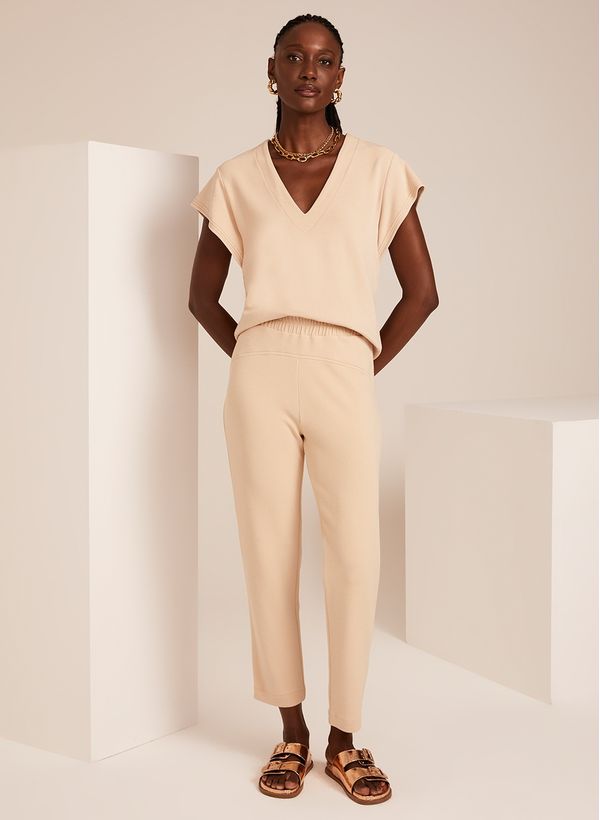 Prática, a Calça Gina é a peça perfeita para o dia a dia com um visual confortável e clean. Experimente combinar com a blusa da mesma coleção, acessórios e papetes, para um resultado monocromático estiloso.