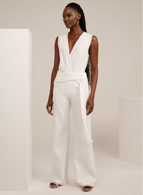Alfaiataria é uma ótima escolha, por se encaixar muito bem tanto em eventos formais quanto aos mais descontraídos. Use a Calça Helo em um look all white com regata, acessórios dourados e finalize com sandália rasteira, para arrematar.